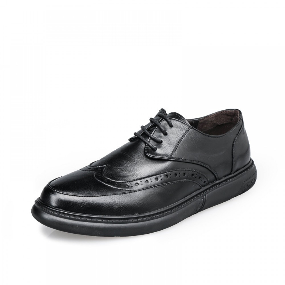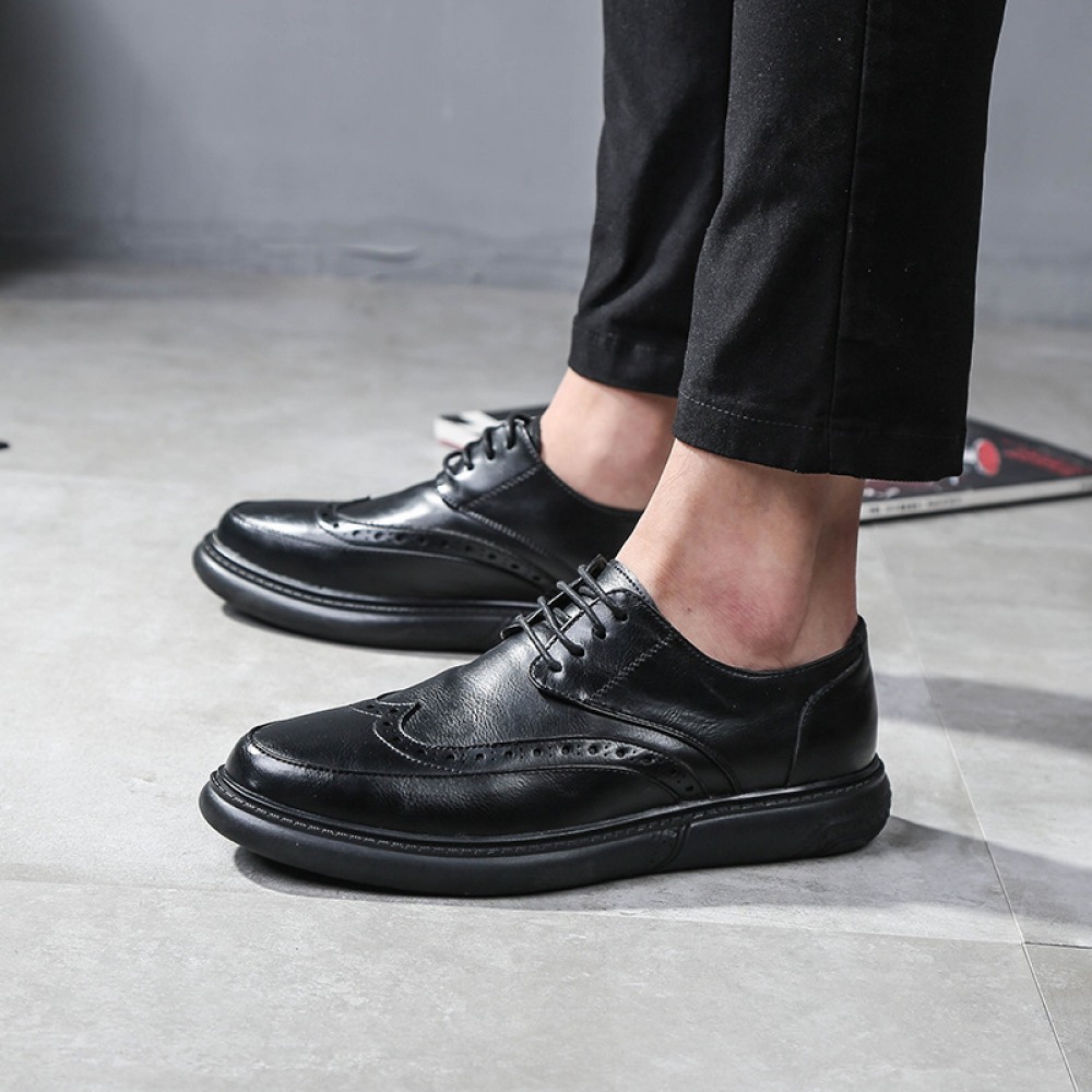 New Men's Shoes Casual Leather Shoe Round Toe Lace-Up Breathable Trend Shoes
