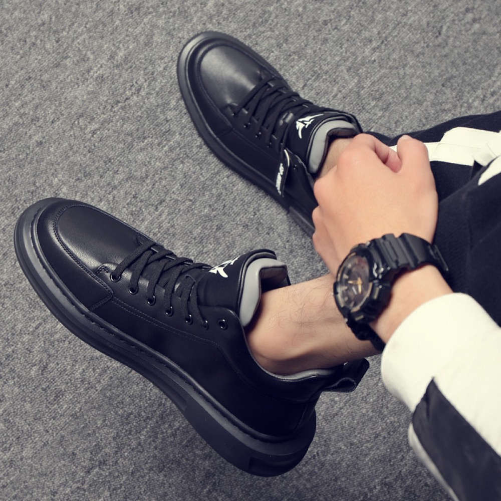 Black Men's Small Leather Shoes Mens Trend Casual Leather Breathable Shoes