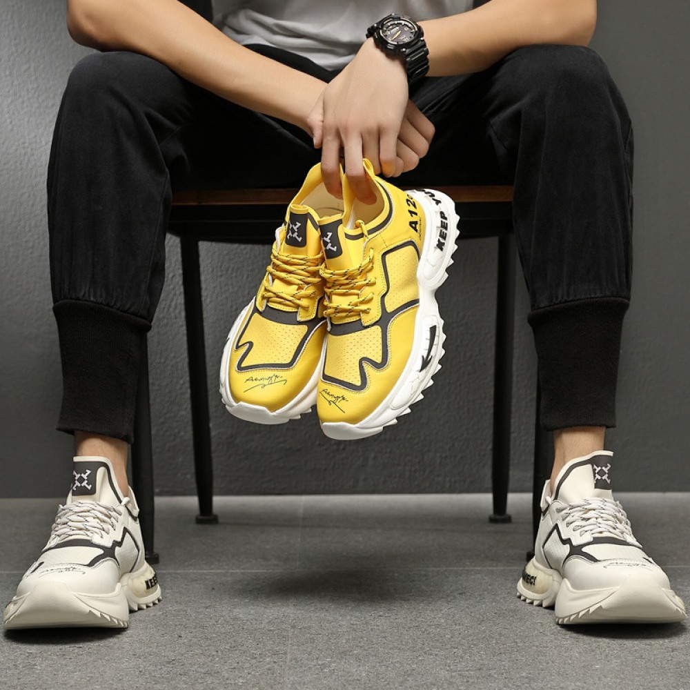 Mens Runing Shoes Walking Non Slip Blade Type Sneakers Yellow