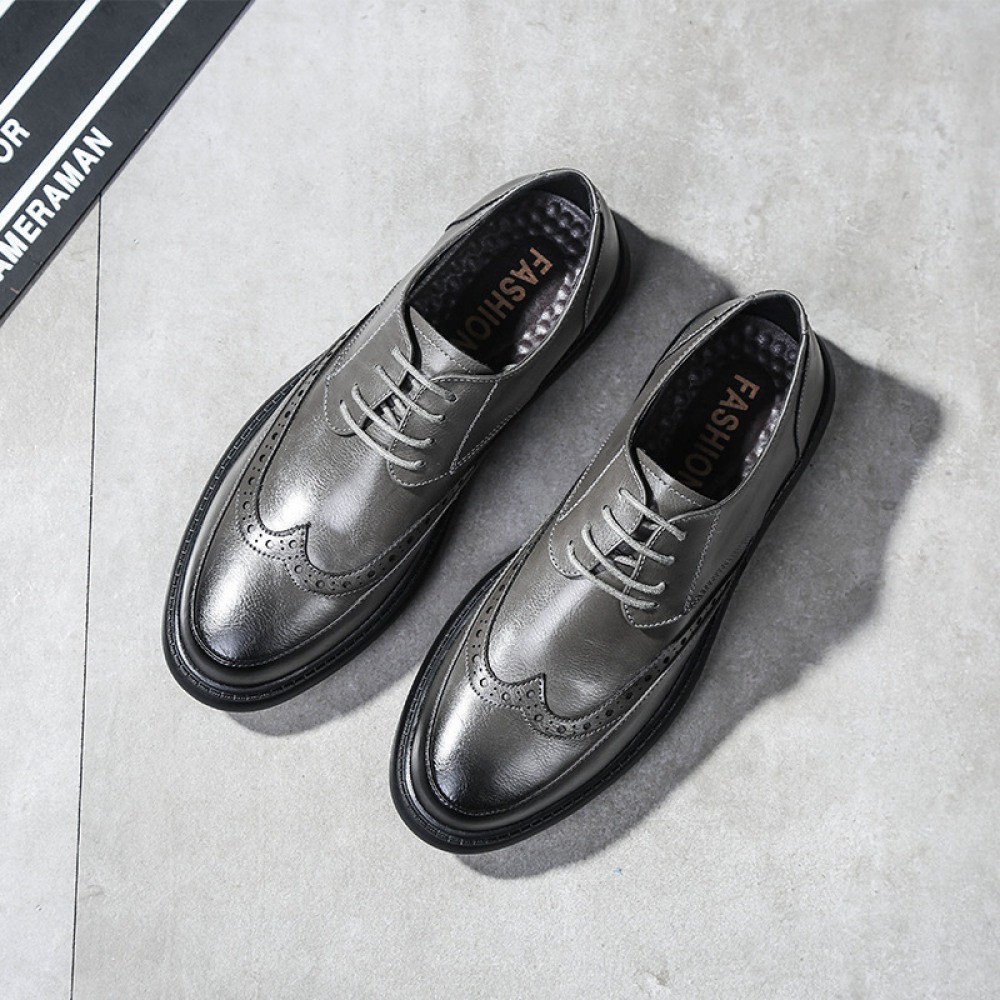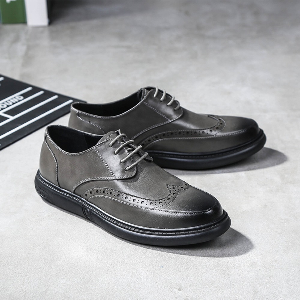 New Men's Shoes Casual Leather Shoe Round Toe Lace-Up Breathable Trend Shoes