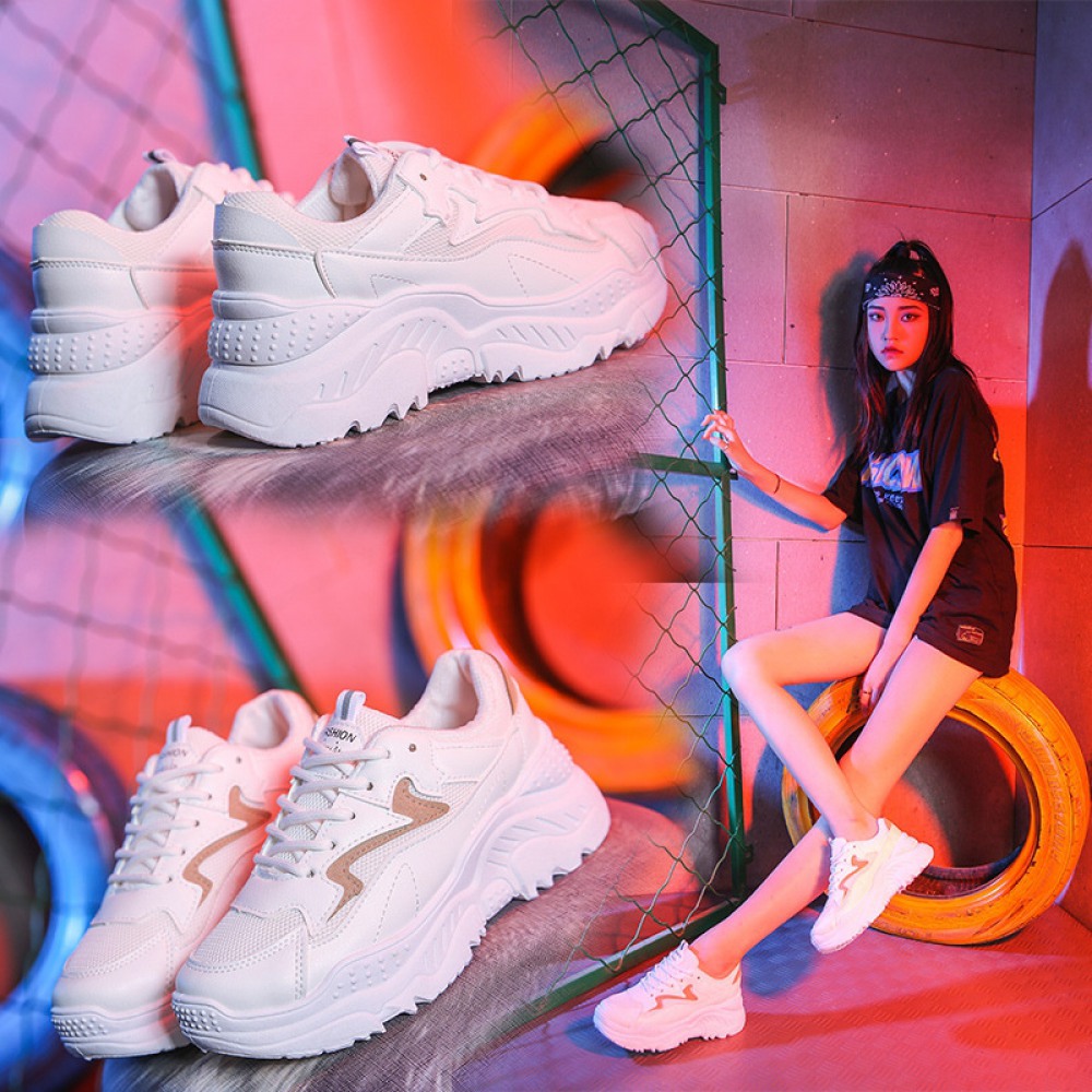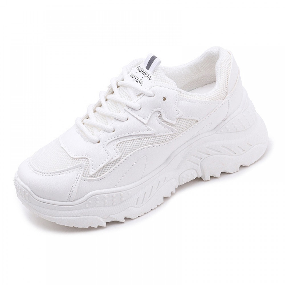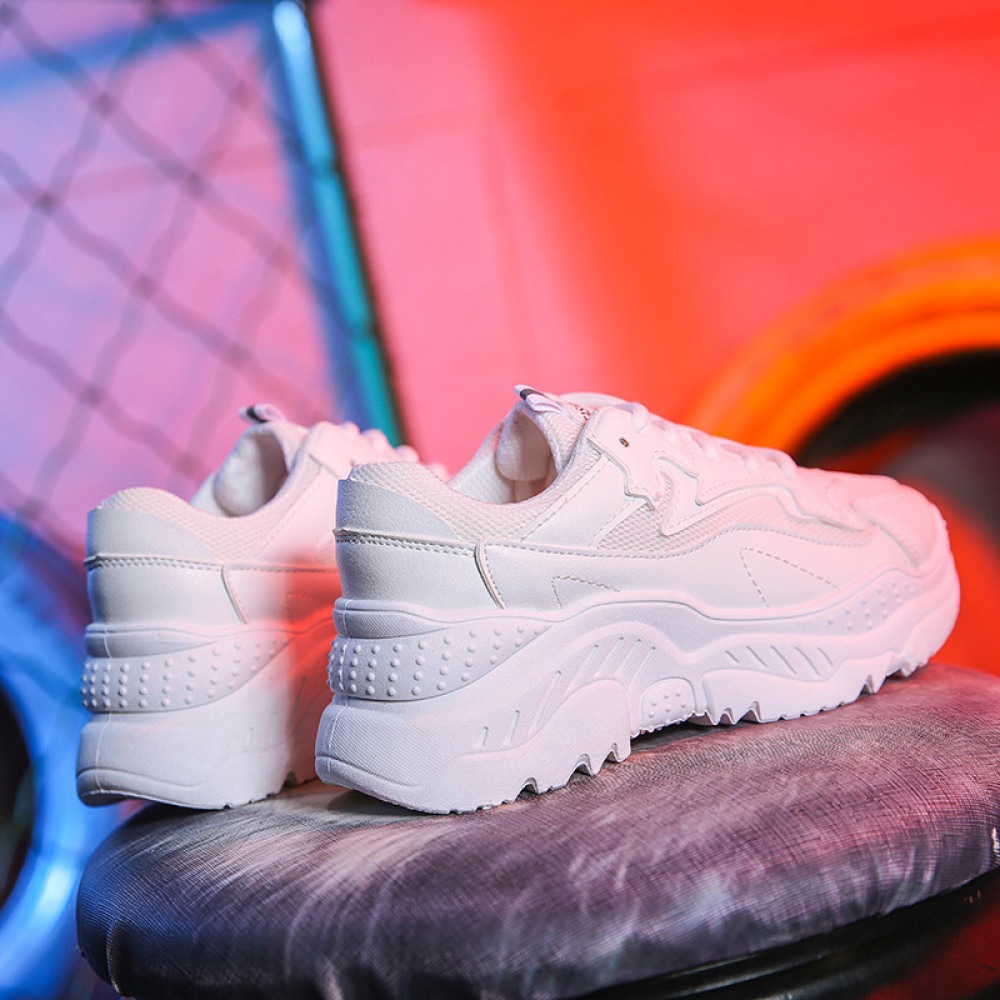 Basic White Shoes Women Spring New Student Flat Running Shoes Women's Lace-Up Platform Shoes